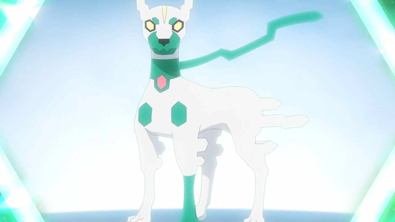 Bức tượng thể hiện một sinh thể lai giữa Dialga (phần thân trên) và Palkia (phần thân dưới). Giả thuyết phổ biến cho rằng hiện tượng không gian – thời gian méo mó trong trận chiến giữa hai Pokemon đã khiến người cổ đại tin rằng họ đang chứng kiến một Pokemon đơn nhất.